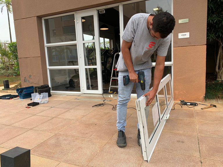 Manutenção de esquadrias de alumínio e portas.